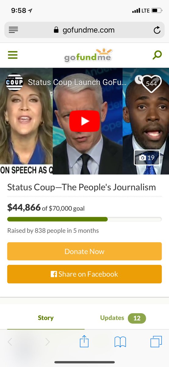 Just $134 away from $45,000 raised on @StatusCoup’s reporting GoFundMe. Tune in tomorrow at noon eastern on Status Coup’s YouTube for our interview w/ presidential candidate @TulsiGabbard. https://www.gofundme.com/status-coup-news …pic.twitter.com/9dtSFxLitW