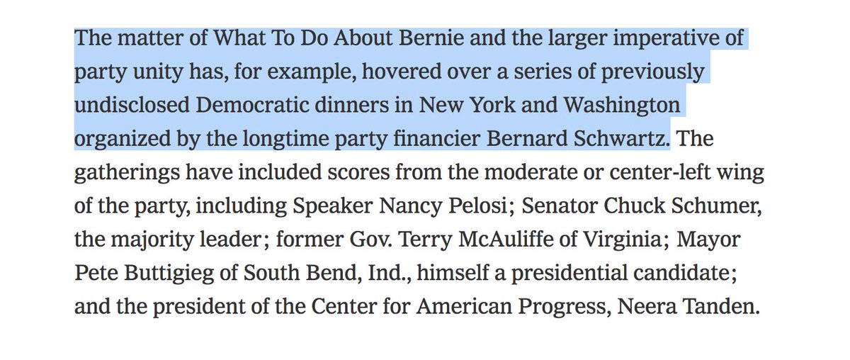 As someone who covered @DNC rigging 2016 primary extensively on campaign trail, I don't know how else to read this till-now undisclosed series of secret dinners with establishment Democratic elites brainstorming what to do about @BernieSanders as...planning how to rig 2020pic.twitter.com/Uoe5hi4roW