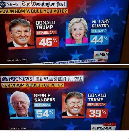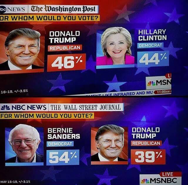 Most polls had her up 2-3 points in 2016 with Bernie being up 10–15 points. Those were the numbers whether you like it or not