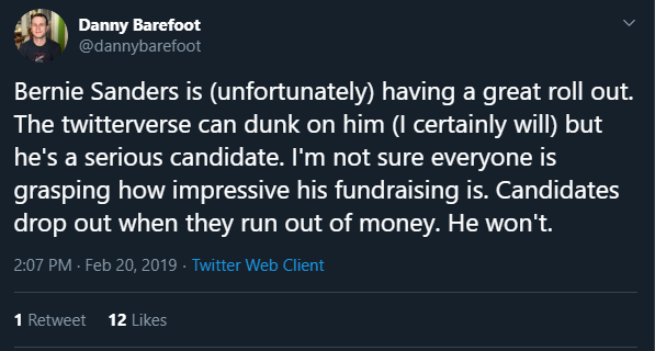 The fact that they're doing this is a reverse endorsement of Sanders. You can tell who the wealthy, corporations and oligarchs really fear if they're gonna start full scale pumping of Warren's tires.