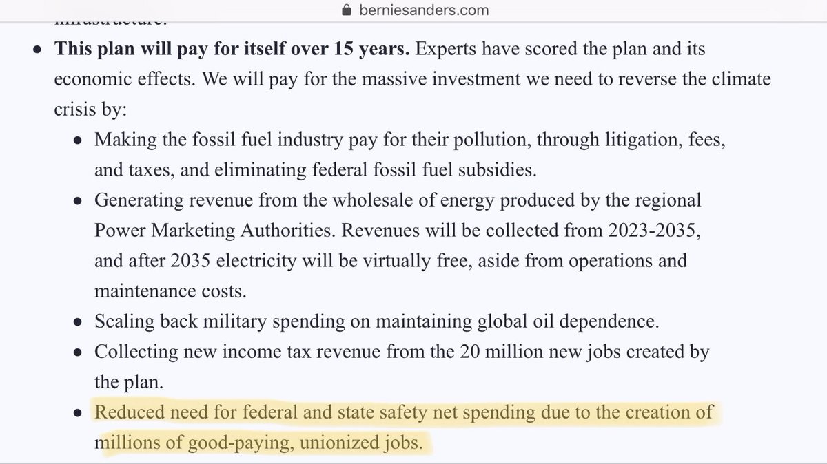 You are arguing in bad faith. GND has the same goals to reduce the burden of social welfare but leaves people with zero on the back end instead of $1000/mo. In the meantime, you are perpetuating the poverty trap. UBI is a more elegant solution. Source: http://berniesanders.com pic.twitter.com/ScZKJ2DubJ