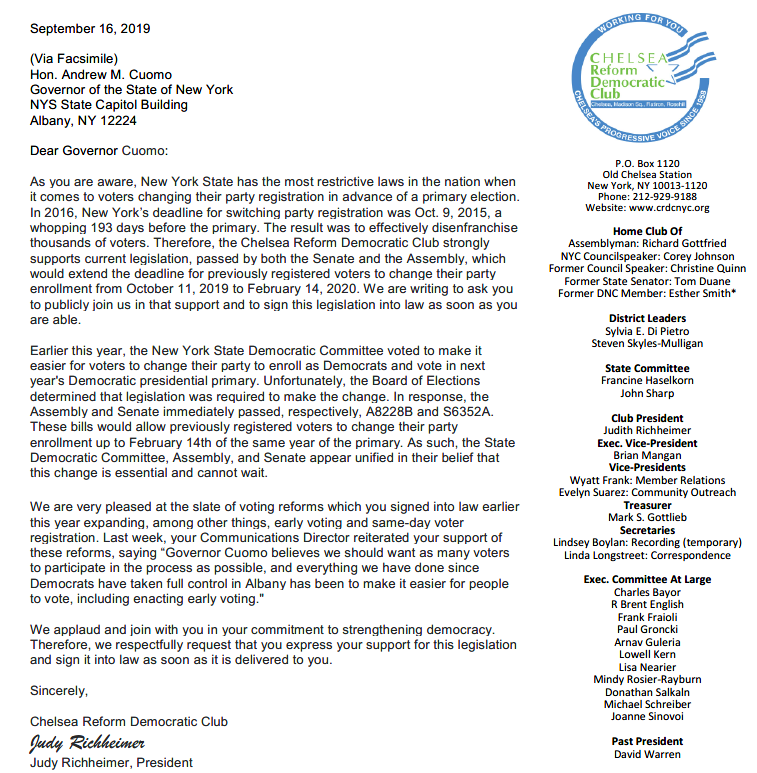 Cuomo has signed many election reforms this year now that we have a true blue Legislature. I wouldn't attribute a bad motive to the delay. HOWEVER, shining light on this is also good. The Governor needs to