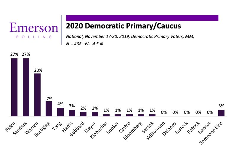 Big news here is that the Gabbard/Steyer ticket is picking up serious steam. Seventh, but a strong seventh