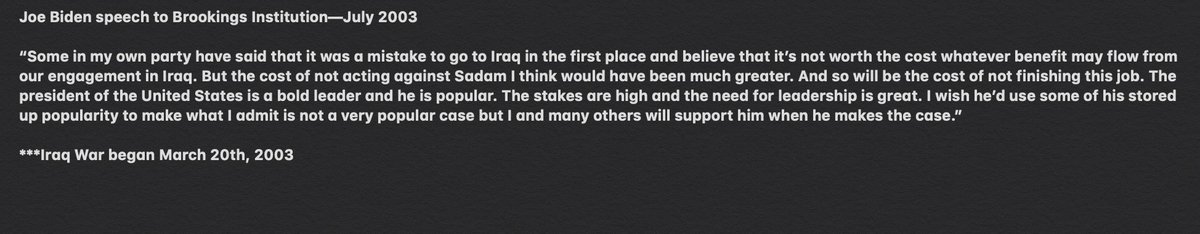 .@JoeBiden is lying about his record on the Iraq War. He wasn't against the war in Iraq as soon as it began. He was praising Bush and calling to finish the job after. #DemDebatepic.twitter.com/xUNkIhtalj