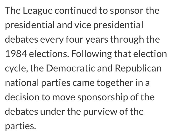 It used to be - and clearly needs to be! Research the League of Women Voters - https://www.lwv.org/league-women-voters-and-candidate-debates-changing-relationship …pic.twitter.com/a6R4e5lerW