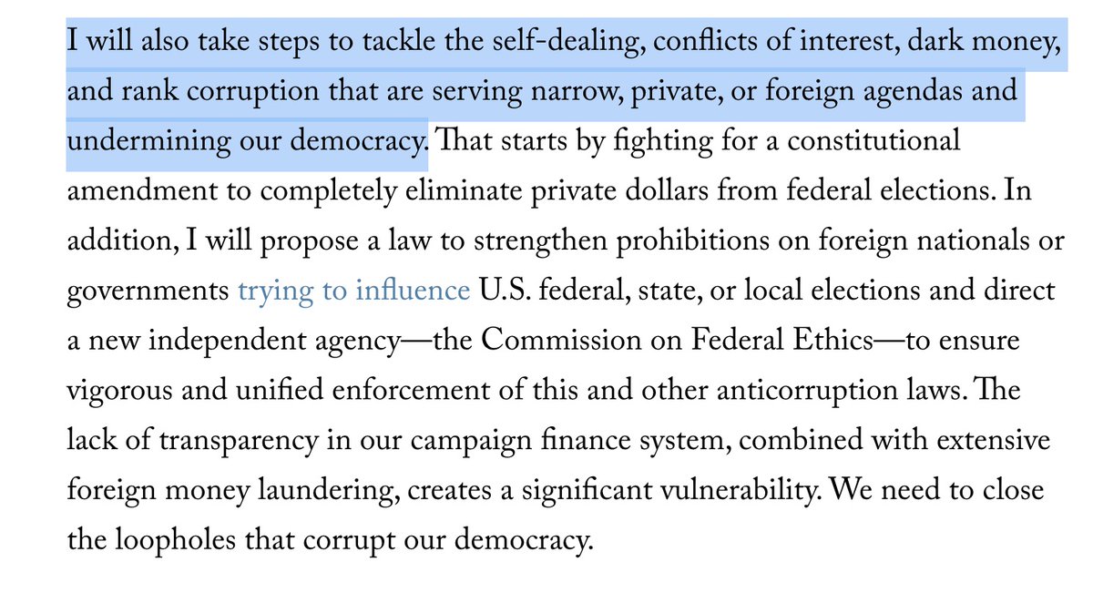 .@JoeBiden writes for @ForeignPolicy that he will "tackle the self-dealing, conflicts of interest, dark money, and rank corruption." --Biden has a Super Pac -Wall St/Fossil Fuel execs raising big $ for his campaign -Just had a campaign retreat in Iowa for wealthy donorspic.twitter.com/NY7VJ7FU5L