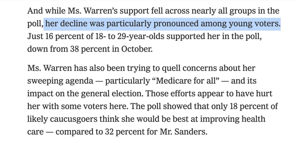 I think this is largely right. This poll/analysis was deadly and it was read by the precise people who were supporting her and susceptible to being moved off of her based on it. Trump's election has people not trusting their own judgment and they saw this and panicked.https://twitter.com/Redistrict/status/1226758256007274496 …