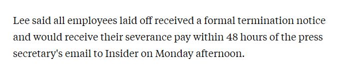 the campaign said they informed them 48 hours AND theyre getting their severance so where do you come onto this “fear of not getting paid” smear issue??