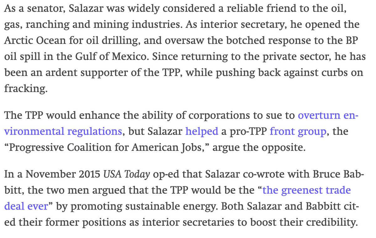 "Union man" @JoeBiden held fundraiser yesterday @ home of fmr Interior Sec/Senator @KenSalazar, who @HillaryClinton named her 2016 transition chair. Salazar champions TPP (Biden supports) & fracking (Biden supports). TPP would devastate unions/fracking IS devastating our planet.pic.twitter.com/1KjMxZRP0B