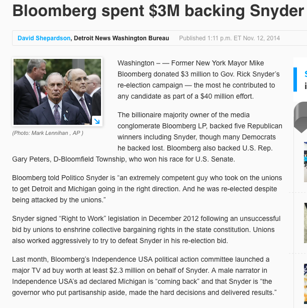 @MikeBloomberg sent big time money to Rick Snyder's last campaign, so he bears a lot of responsibility for Flint's condition. The people of Flint deserve help from his vast fortune to fix their water crisis, not a self-serving campaign to exploit them so he can avoid taxes.Thanks. Twitter will use this to make your timeline better. UndoUndo