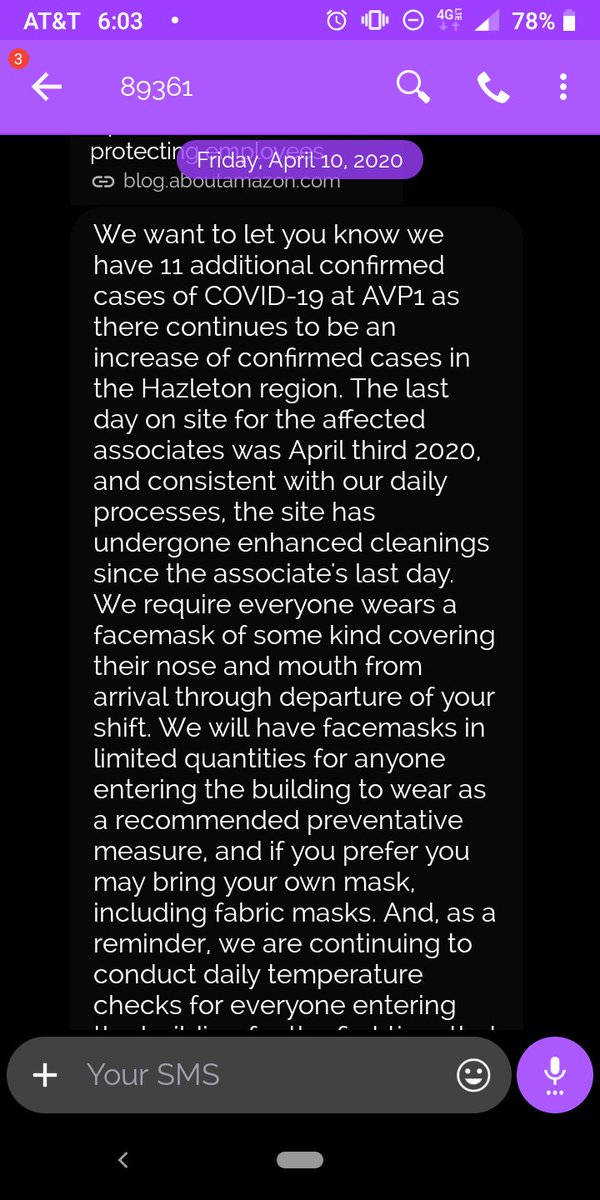 NEWS: Hazelton, PA @amazon has another 11 positive COVID-19 cases--brining it up to 41 cases employees have been told about. I spoke with a worker here who revealed the lack of PPE equipment or basic sanitationpic.twitter.com/Ta8xGgt4Et