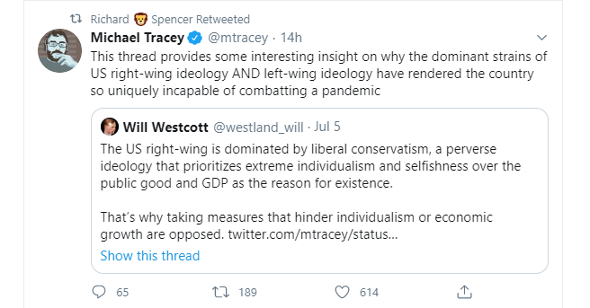 Tracey citing white nationalist and supremacist; one as a source for distorted 'news' coverage, the other as offering 'an interesting insight' on US politics.pic.twitter.com/KPWewP8enU