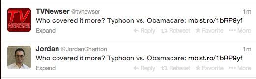 Who covered it more? Typhoon vs. Obamacare: http://mbist.ro/1bRP9yf