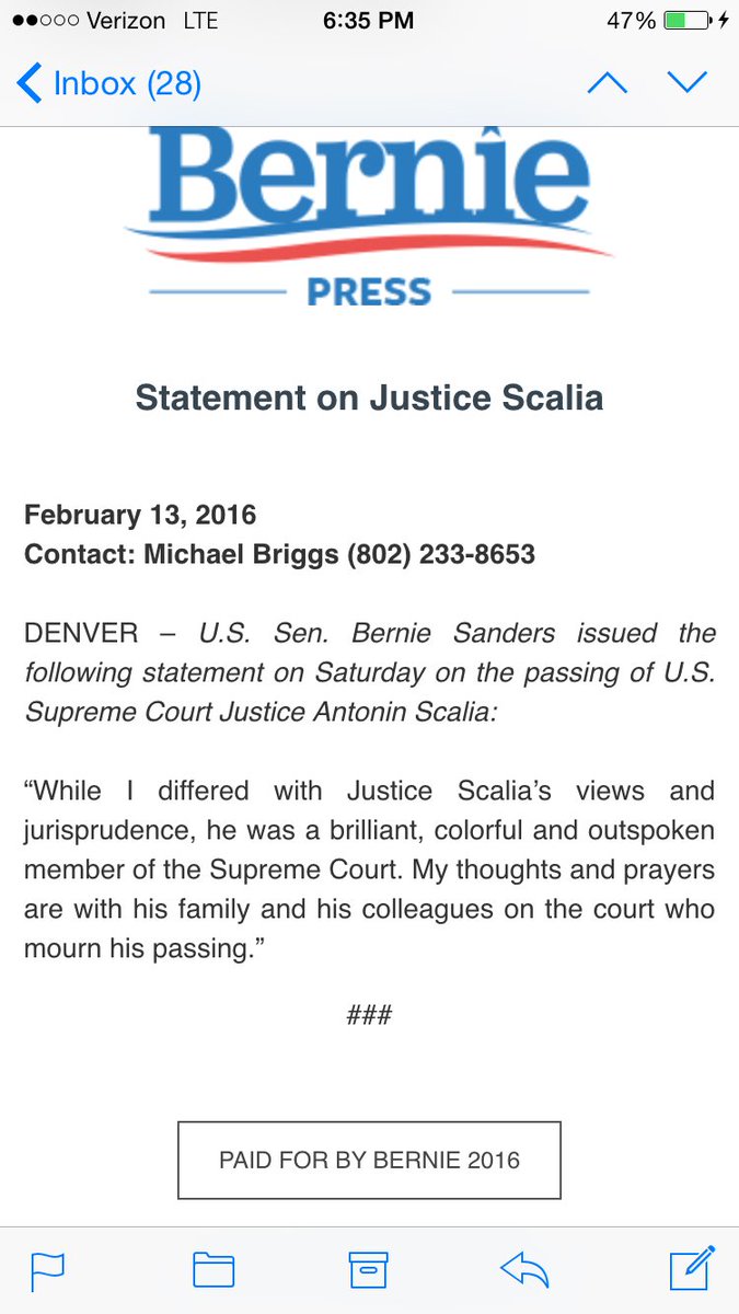 @JordanChariton@BernieSanders Bernie is always nice and everything but this is a case where i wish he wouldnt be. Scalia deserves no praiseThanks. Twitter will use this to make your timeline better. UndoUndo