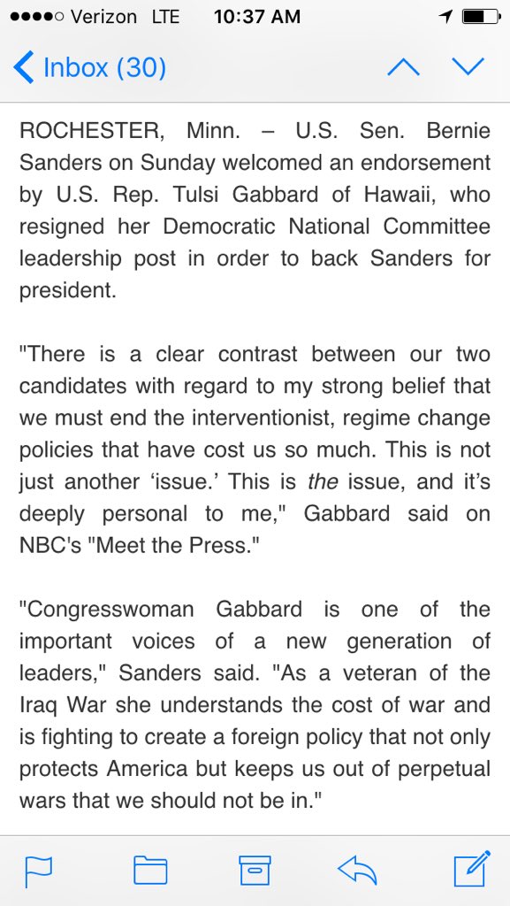 .@BernieSanders campaign welcomes #TulsiGabbard endorsementpic.twitter.com/fKbXuphoEa