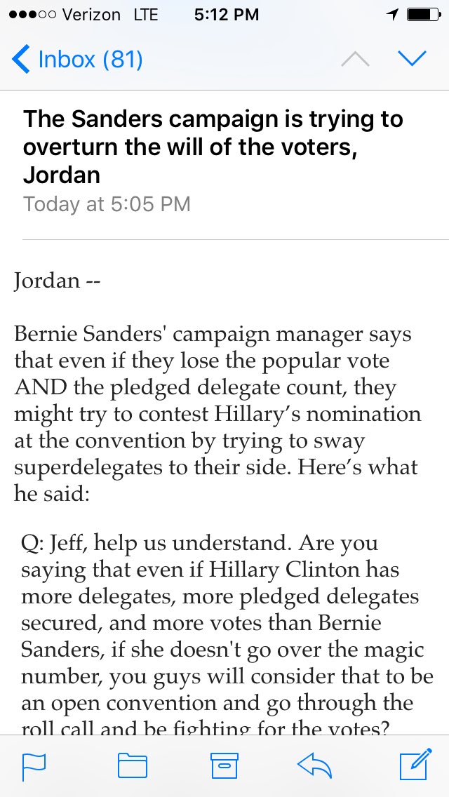 .@HillaryClinton camp email: "The Sanders campaign is trying to overturn the will of the voters" #FeelTheBernpic.twitter.com/p98KaVwpX2