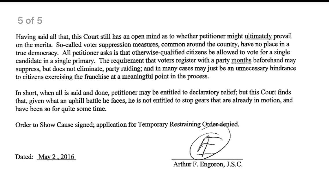 @JordanChariton "for quite sometime" meaning he wants Hillary 2 win, & when Bernie drops out, he will stop NYs primary. Screw that judge.Thanks. Twitter will use this to make your timeline better. UndoUndo