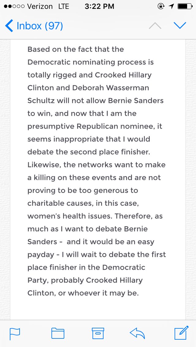 #CowardlyDonald isn't man enough to debate. Rather hide behind@HillaryClinton 's skirtsThanks. Twitter will use this to make your timeline better. UndoUndo