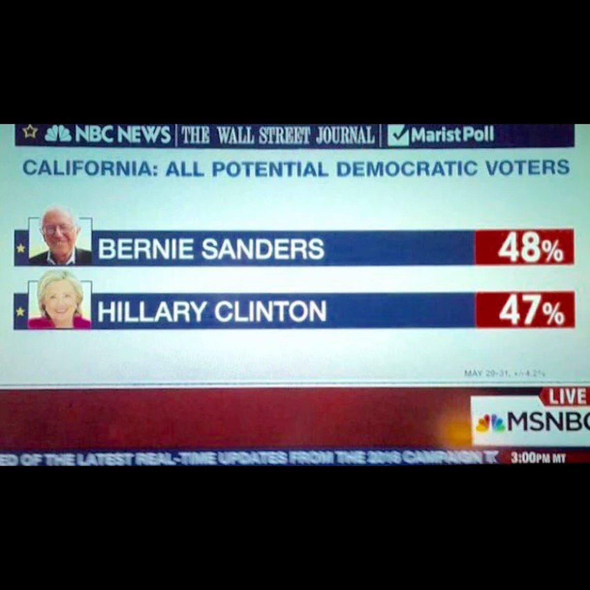 NBC Bernie beating HRC by 1