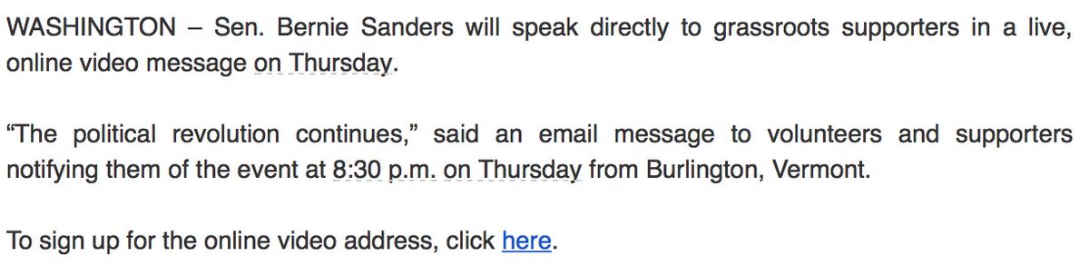 Hope he doesn't say "We must not allow Trump to become President, so...uhm...please fall-in line behind Hillary". No way!