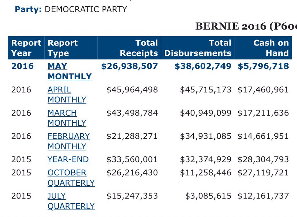 I am still waiting on Bernie's tax returns, fec financial filing, and May's fundraising report