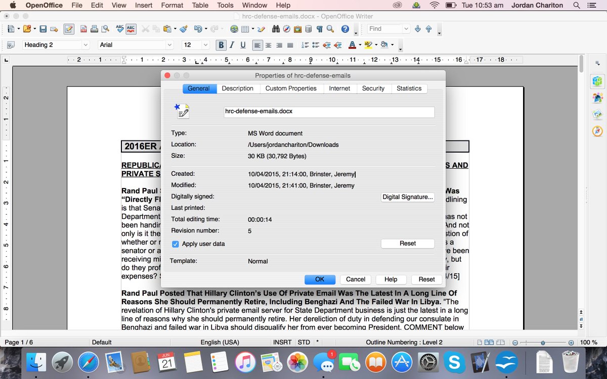 Granted, he could just be compiling emails into a doc. In which case, all we know is: he created the file.