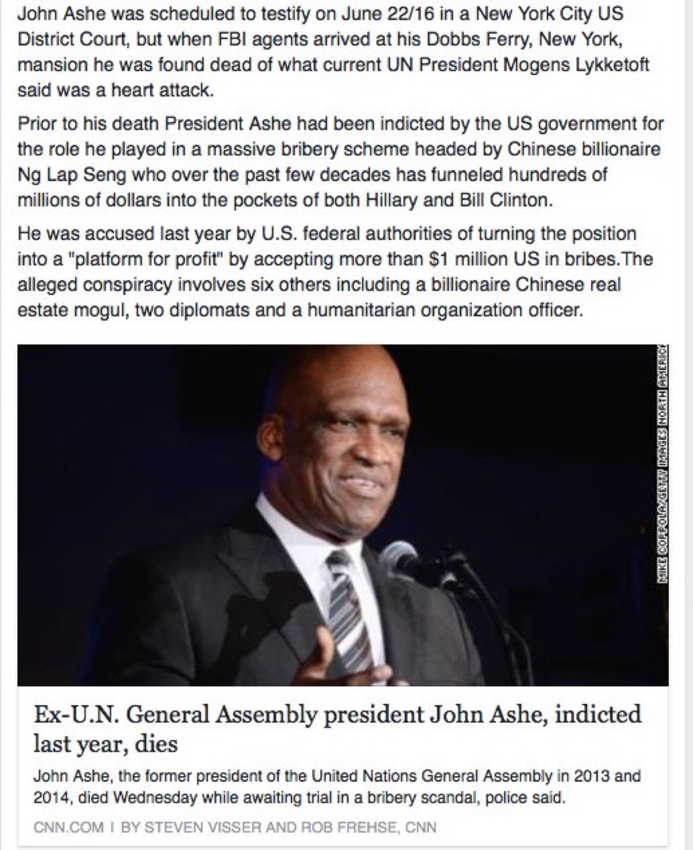 She can start by stopping the killings. http://www.nydailynews.com/news/national/disgraced-u-n-leader-john-ashe-died-weightlifting-accident-article-1.2685625 … http://www.thedailybeast.com/articles/2015/10/07/chinese-billionaire-arrested-in-u-n-bribery-case-has-clinton-links.html …pic.twitter.com/aIbl2GT1yK