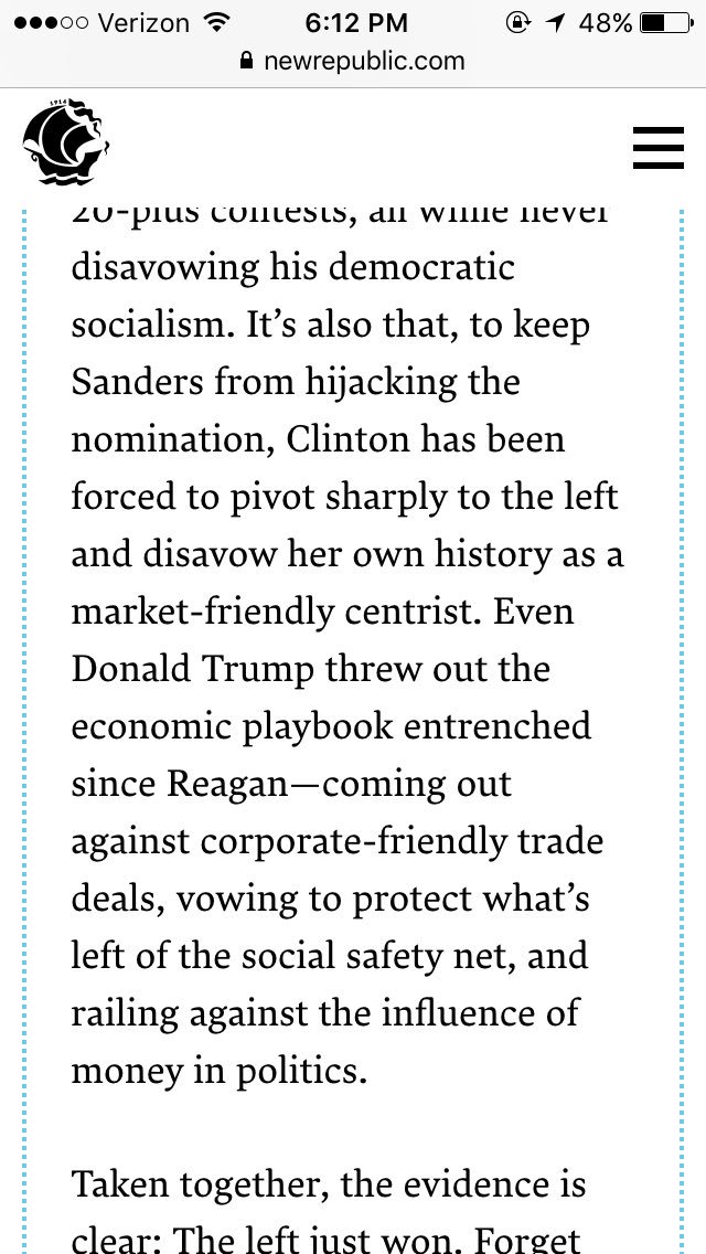 @NaomiAKlein Bernie is the only true Democrat Trump is Racist Bigot & Hillary leans so far Rt she's RepubThanks. Twitter will use this to make your timeline better. UndoUndo