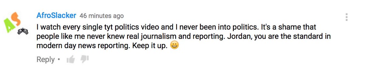 I think TYT has woken a lot of ppl up & even tho ur all pretty progressive you're not afraid to disagree, keeping it real.