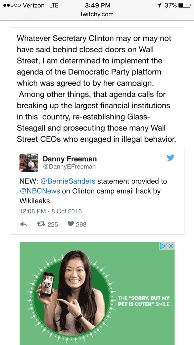 @BernieSanders if@HillaryClinton speeches were outed in primaries?#SadThanks. Twitter will use this to make your timeline better. UndoUndo