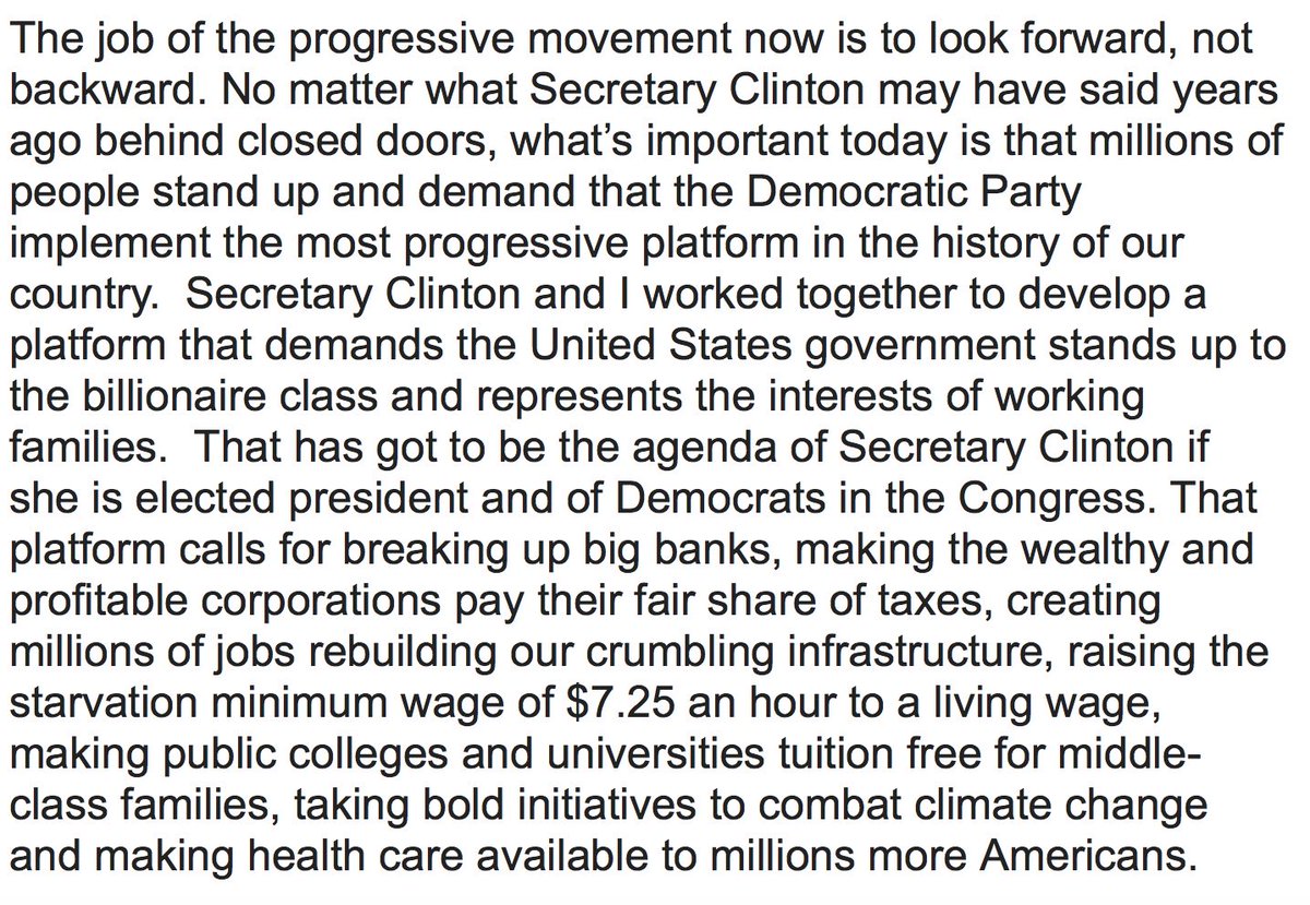 problem is all that nice stuff he mentions are her public positions. Her donors want their ROI