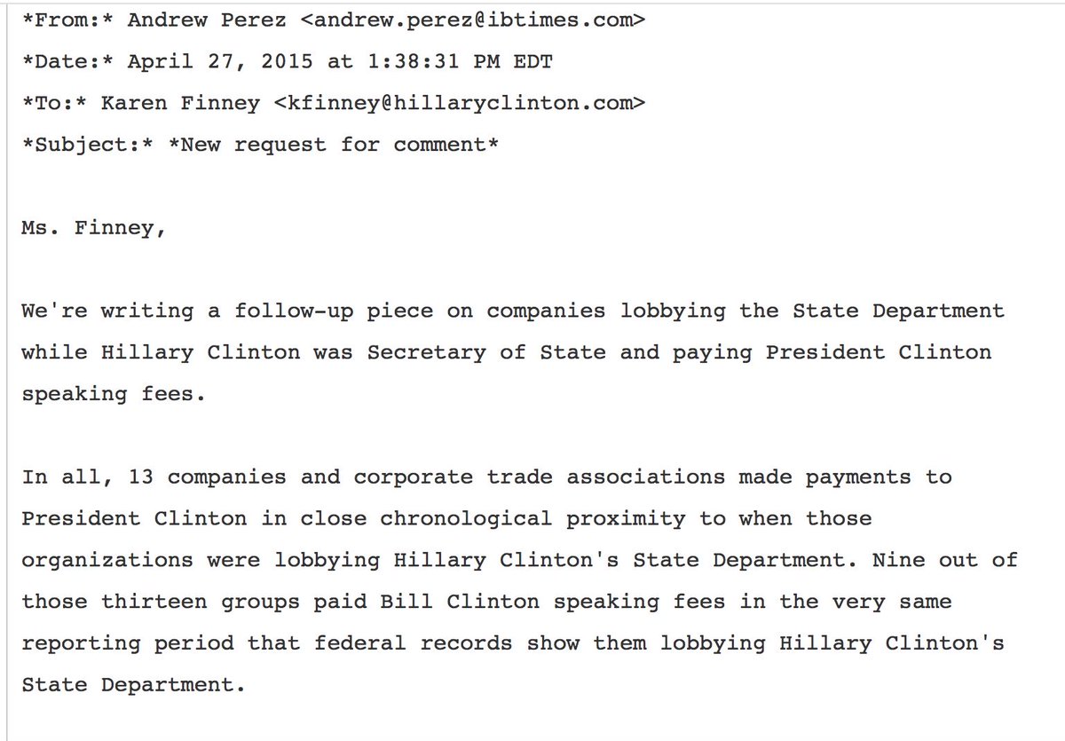 .@HillaryClinton camp dodges ? from @IBTimes on comps lobbying @HillaryClinton while Sec State/@billclinton paid speeches #PodestaEmails9pic.twitter.com/Wo7gAkm4ea