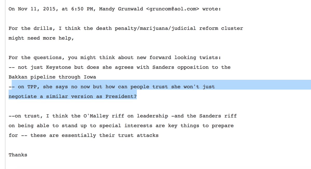 A TERRIFIC prep question asked by @HillaryClinton camp advisor on her #TPP flip-floppery #PodestaEmails15 pic.twitter.com/PfnB8oHbiM