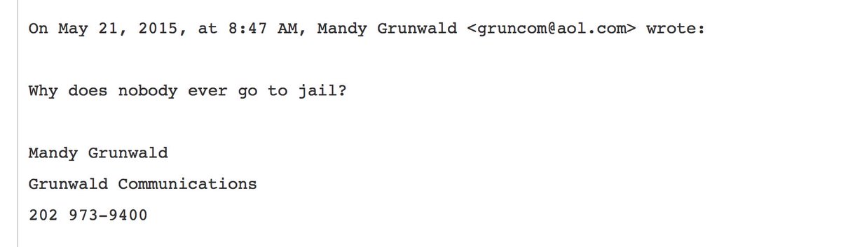 .@HillaryClinton policy advisor shows how naive or willfully ignorant campaign is on jailing fraudulent bankers #PodestaEmails16pic.twitter.com/2nyVdWFtBR
