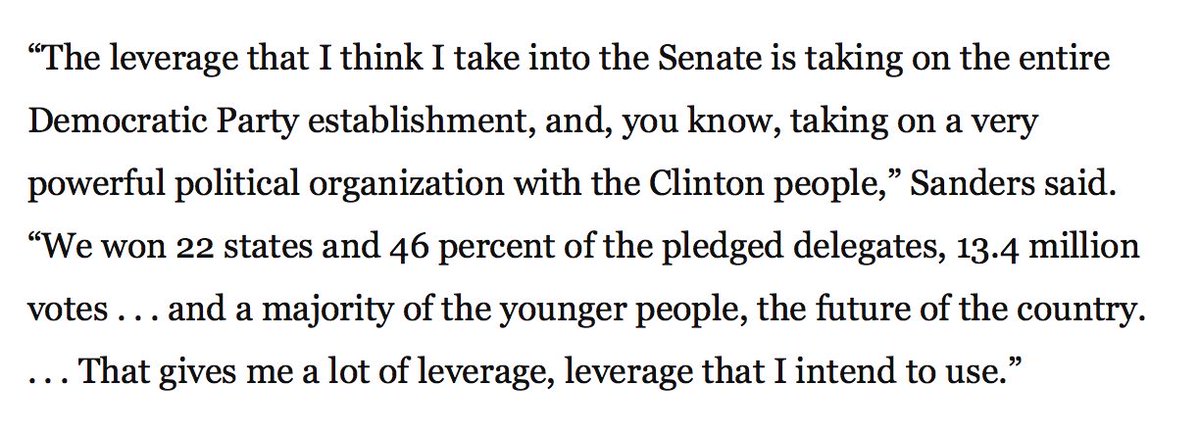 He would have even more leverage under Trump, as that would be a total rejection of HRC/establishment dems