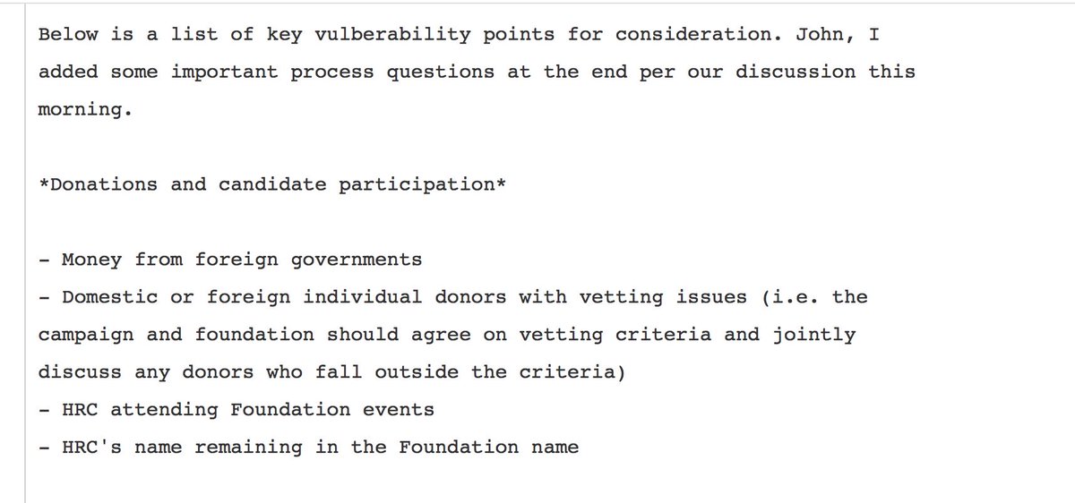 .@HillaryClinton camp manager sent out email flagging all the conflicts/issues that may arise due to Clinton Foundation #PodestaEmails18 pic.twitter.com/jxu1dIkuxy