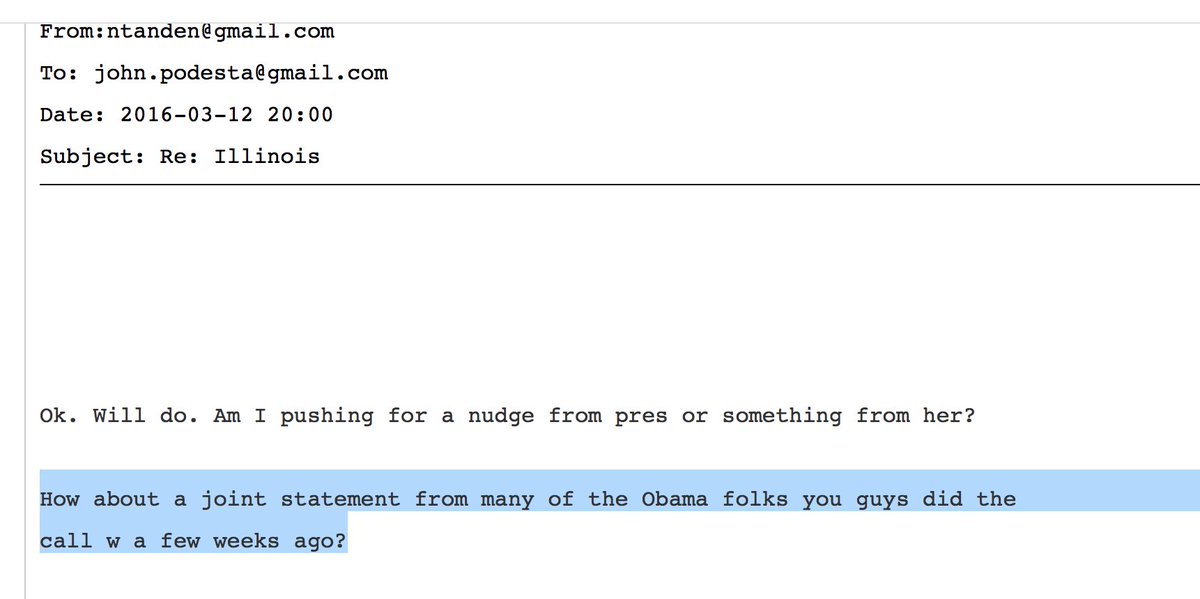 .@barackobama's team held conference call w/ @HillaryCinton camp during Dem primary (from this email, my guess is in Feb) #PodestaEmails19pic.twitter.com/nIdnUe12RW