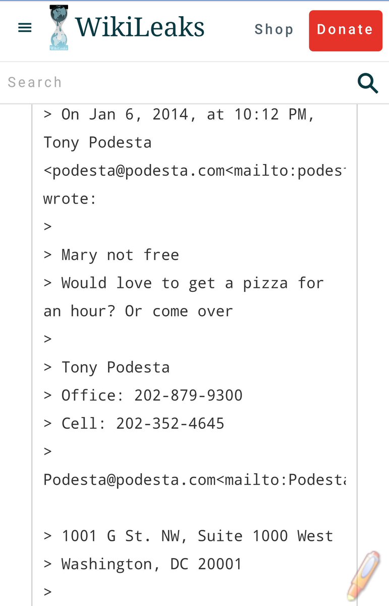 have you looked into the connections of the child trafficking? Keywords: pizza, hotdog, etc. Def code talk