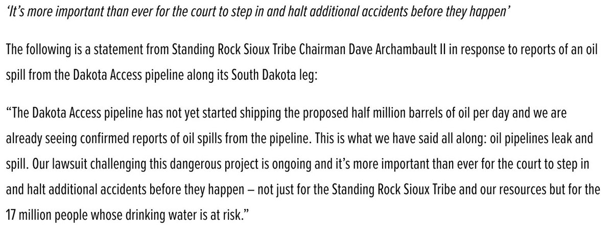 #NoDAPL BREAKING: @StandingRockST Chairman Statement on #DAPL Leakpic.twitter.com/VpYeNygkU4