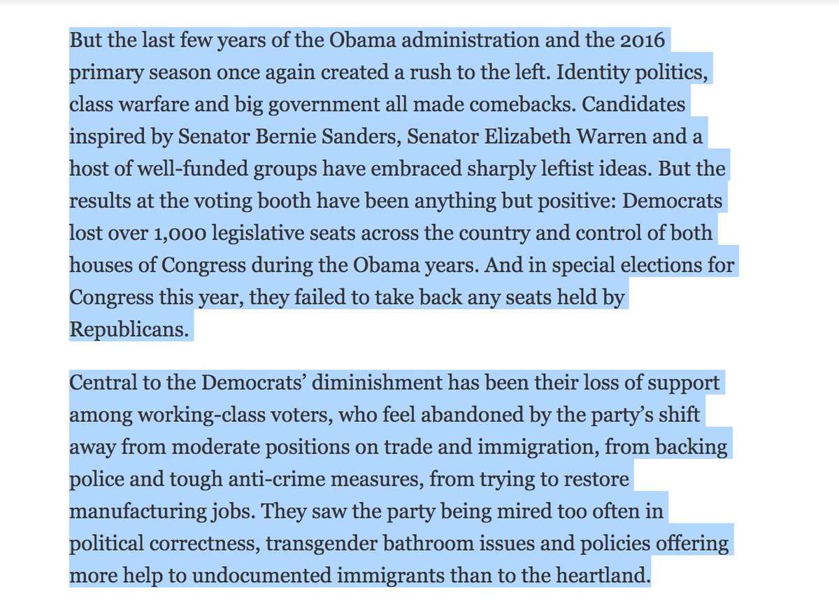 Such a copout. Democratic Party abandoned working people 3-4 decades ago. Globalization only hastened decline of US working class