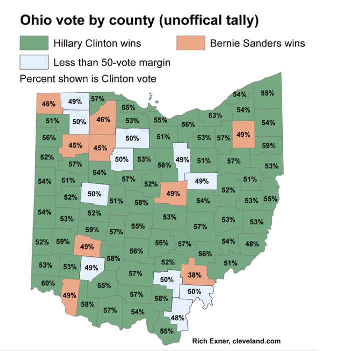 Interesting... That would be news to Democratic voters in my state of Ohio, where she got 57% of the vote winning 68 counties in the primarypic.twitter.com/YhdUZ6MFiH