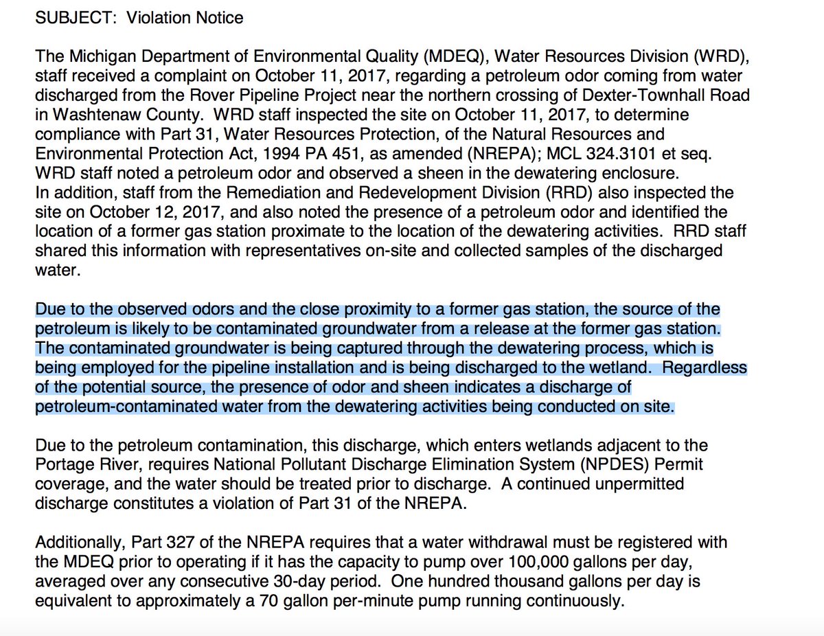 MI Dpt of Environment Quality Admits #DAPL parent company spills in MI wetlands (20-30 spills already 4 Rover Pipeline). STILL NOT SHUT DOWNpic.twitter.com/X5y17g1KX7