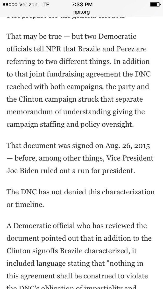 Yeah, this is bullshit and needs to be clarified. There's no way he "signed the same agreement" as this agreement gives the Clinton campaign full control over the DNC. Ain't no way he could have possibly signed the same agreement.