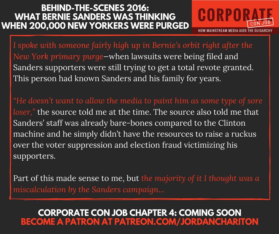 What was @BernieSanders really thinking after the New York Primary purge of 200,000 voters? Subscribe to my Patreon to find out-- http://Patreon.com/JordanChariton  #CorporateConJob Ch. 4 drops next week! The next 20 subscribers at $5 or higher get access to a Q&A video call with me!pic.twitter.com/aRBbtlIsf0