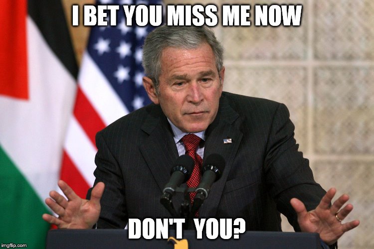 A wave of revisionist nostalgia is sweeping the centrists. They conveniently forget that he and his administration lied us into the war in Iraq which led eventually to more terrorists and Isis. Now he is just like a ripe peach, soft and fuzzy, just like their memories.