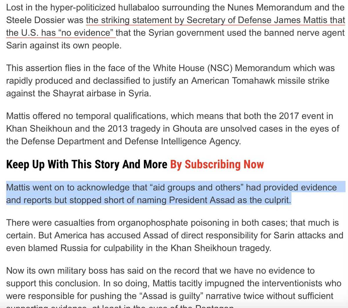 But the UN says Assad has used chemical weapons more than two dozen times. Are you only concerned with one nerve agent? https://www.reuters.com/article/us-mideast-crisis-syria-warcrimes/syrian-government-forces-used-chemical-weapons-more-than-two-dozen-times-u-n-idUSKCN1BH18W …