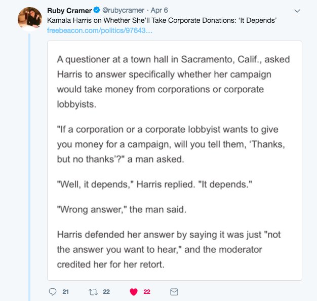 have you seen this!! kamala harris and bernie regarding 2020 and corporate/lobbyist donor money!!https://www.cnn.com/2018/04/08/politics/bernie-sanders-kamala-harris-2020/index.html …