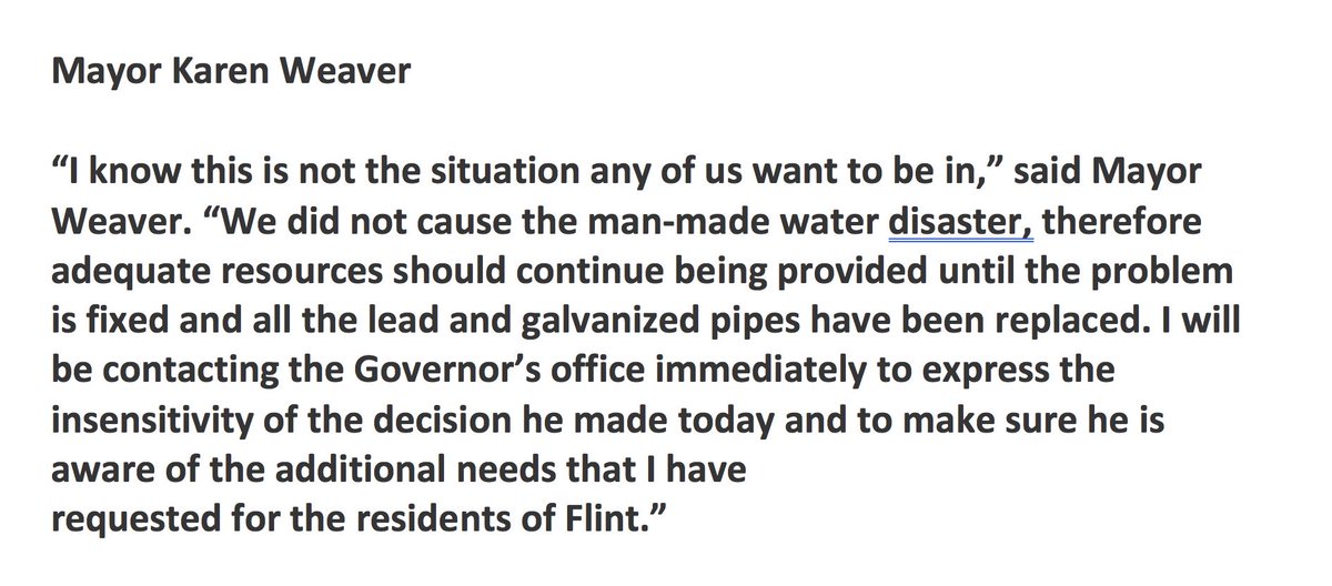 Flint Mayor Karen @karenaboutflint Weaver To Me on Governor Rick Snyder Closing Down Water Pods #FlintWaterCrisispic.twitter.com/AoUmZpSfN0