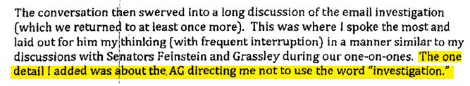 #ComeyMemos show @AGLynch directed @Comey not to use the word "investigation" when referring to #ClintonEmails.pic.twitter.com/IUBgJz6RXN