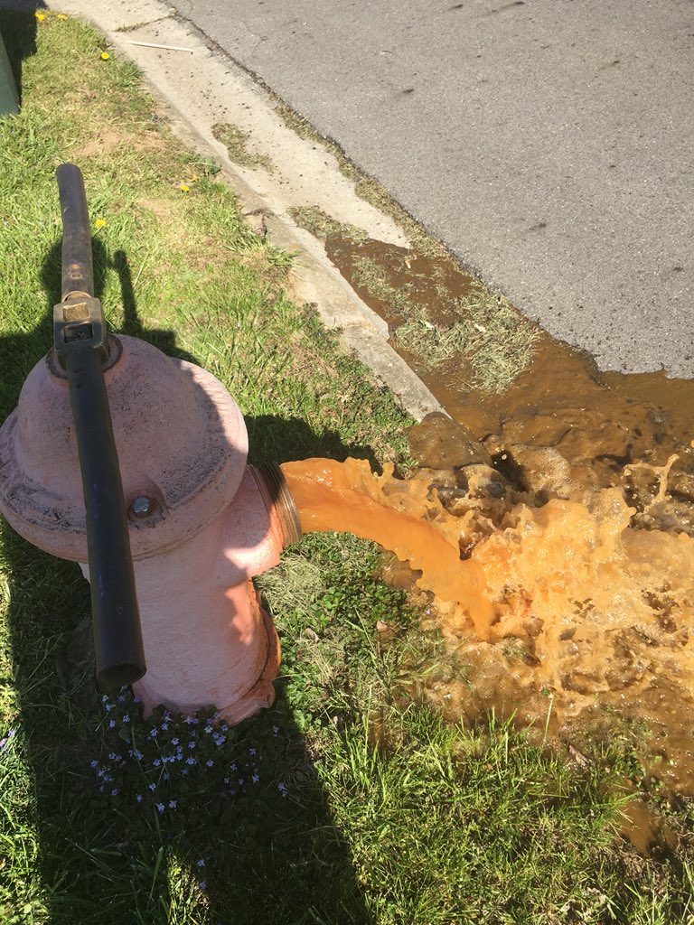 Columbus, Ohio today. Flushing hydrants. As I said, perfectly normal throughout the US. If I took the pic 10 sec later it would look the same as your video.pic.twitter.com/m5FdG02Q3A